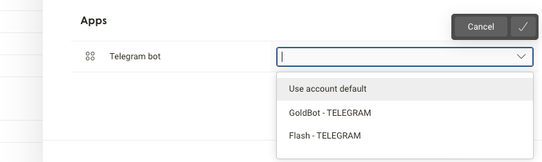 The first bot added to your account will automatically become the default bot for your account, used for all sendouts. The default bot can be changed by assigning another bot the task. Simply open the bot you want to set as account default and switch the Account default toggle