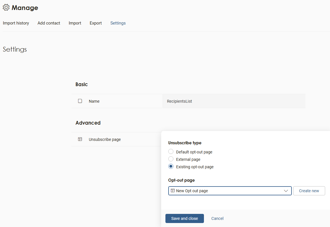 If you want to create a more customized optout flow you can do this by using Symplify optout flow generator. By using this function Symplify will automatically create the unsubscribe page and confirmation page. These pages will be created from a template and are editable.