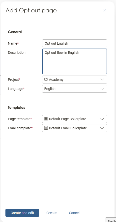 - Currently supported default optout language is English, but you can always edit this afterwards.