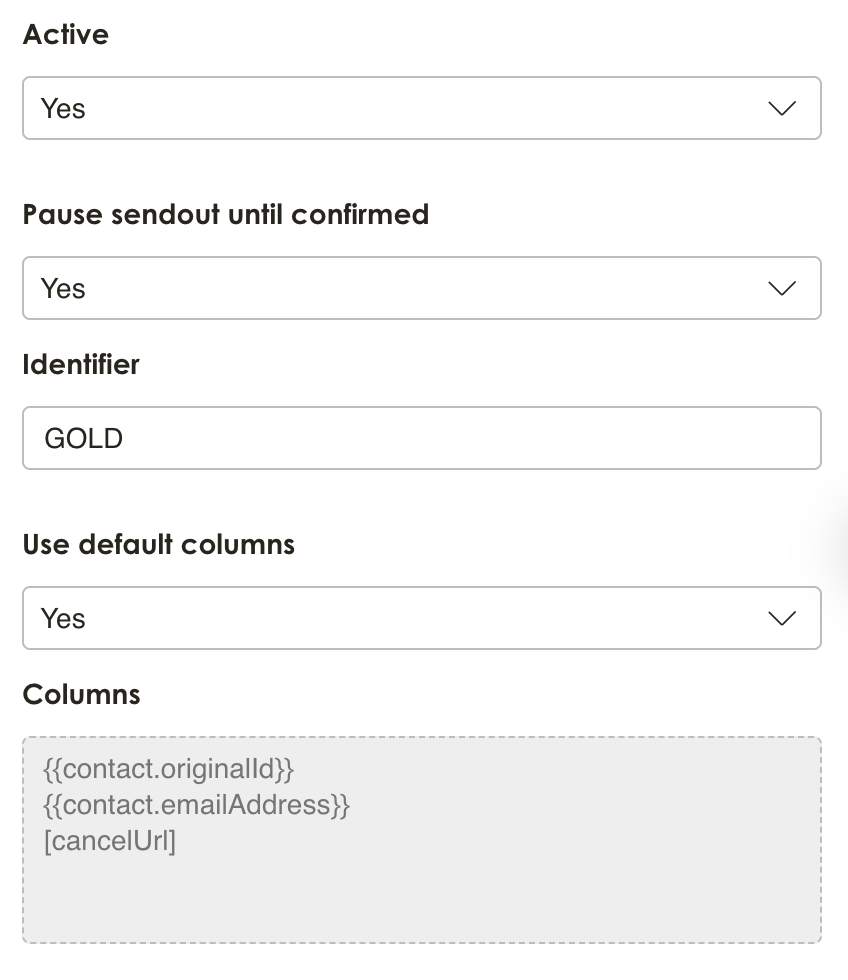 Identifier - tag all your sendouts on the selected level. The identifier will be included in the webhook. (Identifiers on sendout level will override project/account level.)