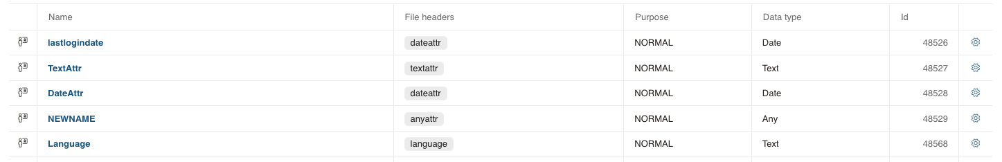 To set this, the attributes in Symplify must know the name of the file column header. To map a file column header to an attribute, you click on the cog-icon and select Edit.