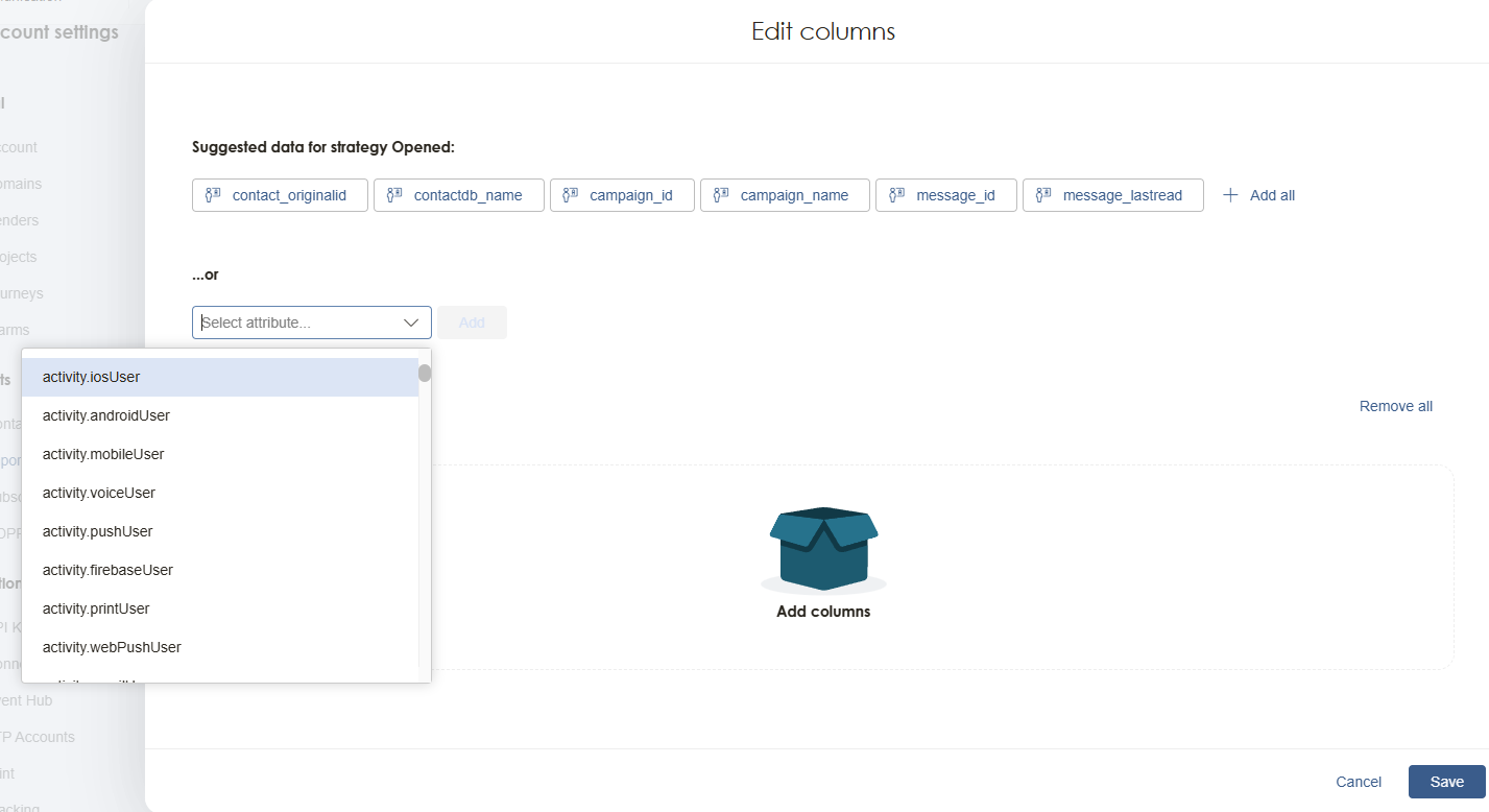 Symplify will suggest data for the chosen strategy. You can add the suggested data columns by clicking on them individually or by clicking Add all.