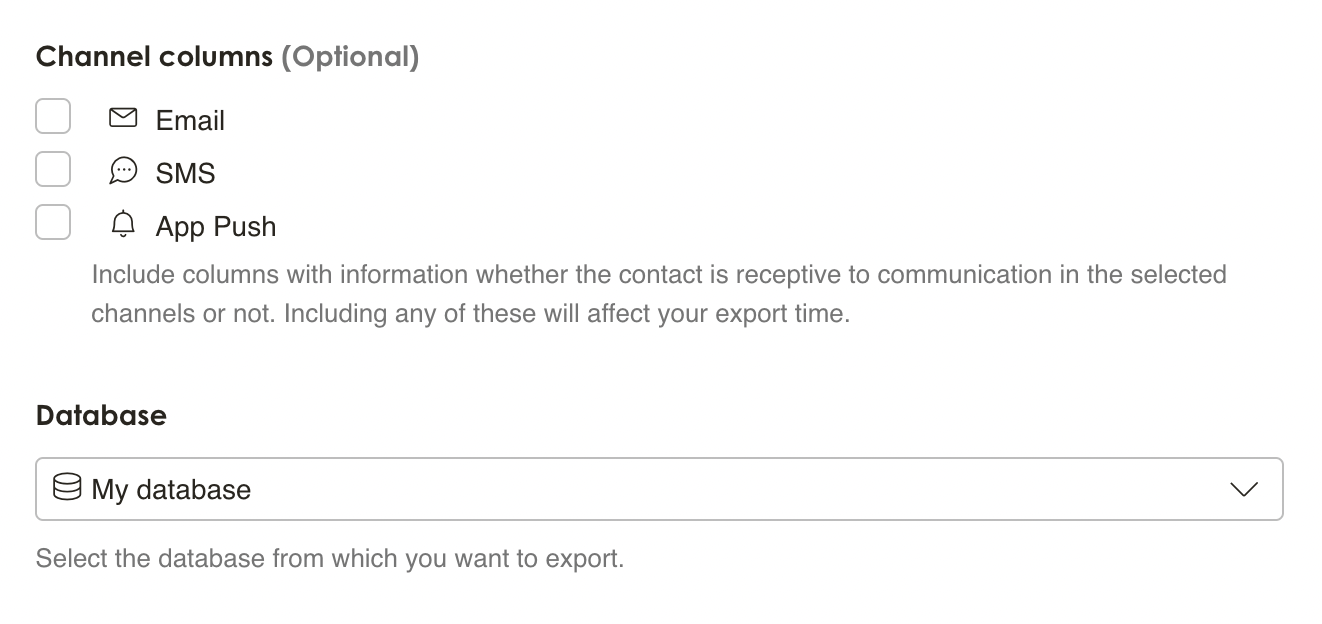 Include columns with information whether the contact is receptive to communication in the selected channels or not (true/false). E.g. if a flag is email=true, the contact has an email address, is subscribed to the email channel and is not bounced.