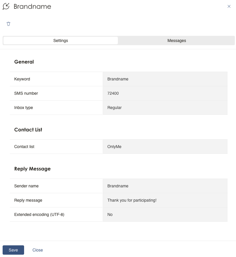 - Regular inbox – to collect mobile numbers (and/or more information) from signups, public competitions or similar.