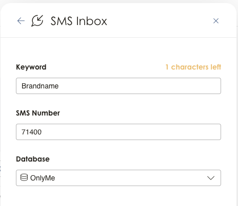 Enter the registered keyword and the SMS number as provided by your Success manager.