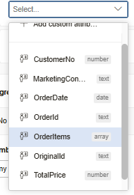 Please note! If you can't find any array attributes in your attribute drop down, your schema probably needs to be updated to map the array. Learn more.