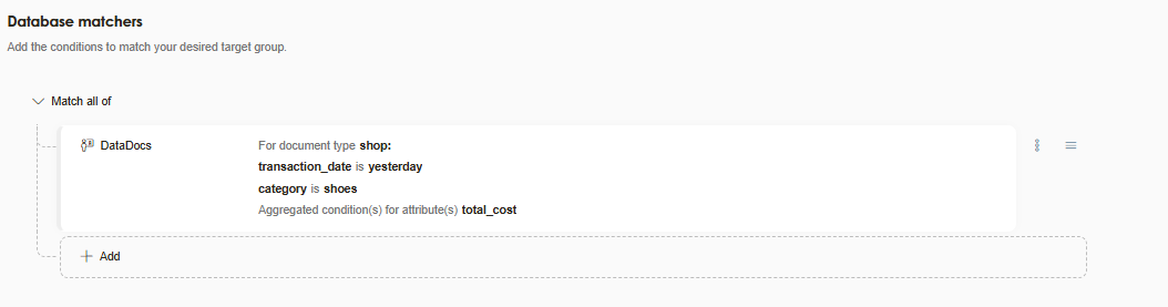 For example, this segment targets all contacts with documents matching a purchase with the transaction date from yesterday where the product category is shoes.