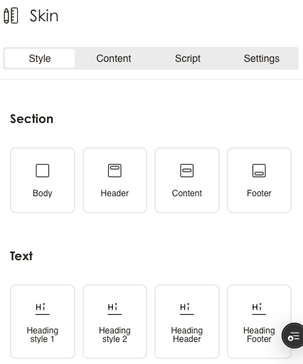 (Les onglets Style et Contenu seront probablement les plus utilisés, tandis que l'onglet Script offre des options de personnalisation supplémentaires et avancées).