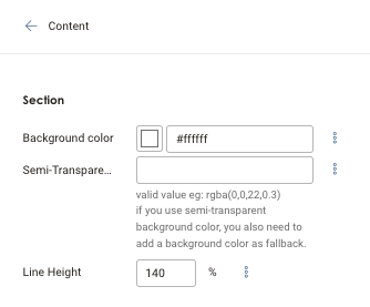 Vous pouvez définir les couleurs d'arrière-plan pour le corps et les sections de contenu.