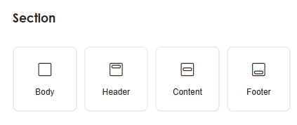 Pour modifier le corps, l'en-tête, le pied de page ou la section de contenu, sélectionnez une section prédéfinie en cliquant sur l'image qui représente la zone.