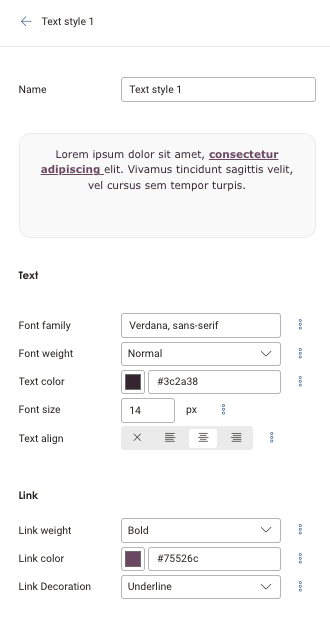 Vous pouvez facilement modifier les styles de texte. En cliquant sur un titre ou un style de texte, vous pouvez choisir la police, la taille de la police, la couleur du lien et plus encore.